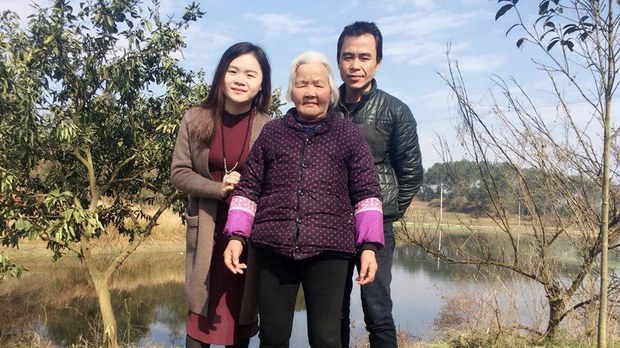 董瑤瓊(圖左)在潑墨事件發生以前與父親董建彪(圖右)、祖母合影。(王劍虹提供)
