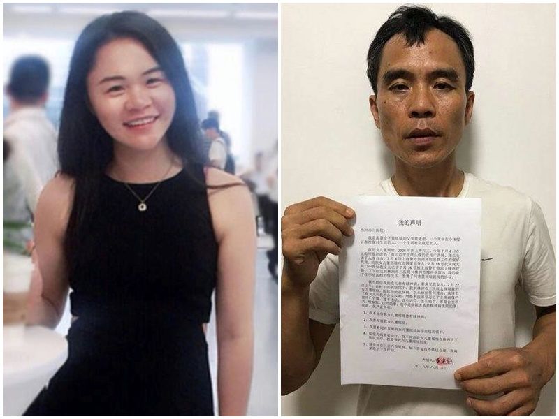 「潑墨女孩」董瑤瓊遭送精神病院餵藥神情癡呆,臉部有明顯浮腫,身材也胖了很多(左)。右為董瑤瓊遭關押前的生活照。(合成圖)