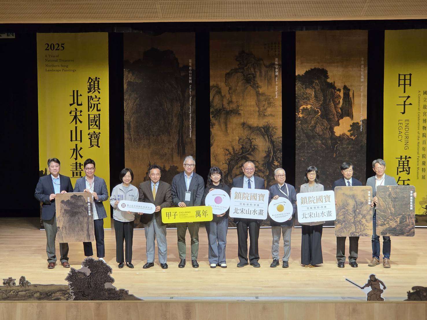 國立故宮博物院迎接百年院慶、南院10週年,特別策劃重磅大展《甲子萬年:國立故宮博物院百年院慶特展》,首度讓聞名世界的鎮院三寶─范寬〈谿山行旅圖〉、郭熙〈早春圖〉與李唐〈萬壑松風圖〉齊聚嘉義南院展出。3件北宋山水巨幅國寶同時展出,在故宮歷史中並不常見。故宮院長蕭宗煌形容這次的嘉義合體,將成為故宮百年與國際藝術年表上極具象徵意義的重要篇章。