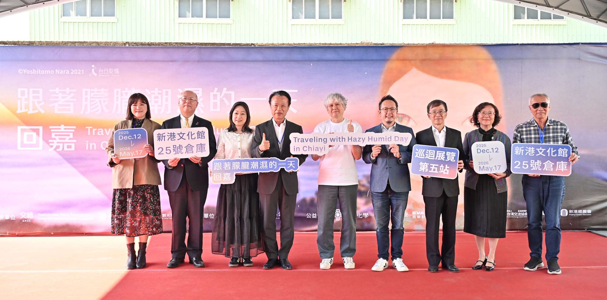 文化總會與奈良美智基金會共同主辦的「跟著朦朧潮濕的一天去旅行」十年巡展最新一站落腳嘉義縣,12日於新港文化館25號倉庫揭幕。日本當代藝術家奈良美智表示,他看到嘉義新港的磚造老倉庫時,立刻想起自己在青森舉辦首次大型展覽的場景,「就像回到青森」,格外有感。