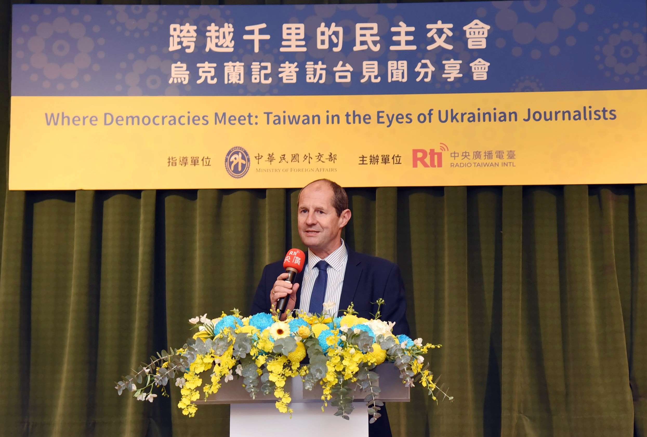 央廣2日舉辦「烏克蘭記者台灣行」分享會,包括歐盟駐台代表谷力哲(Lutz Güllner)、捷克駐台代表史坦格(David Steinke)等多位歐洲駐台使節,以及民進黨立委陳冠廷等都共襄盛舉。