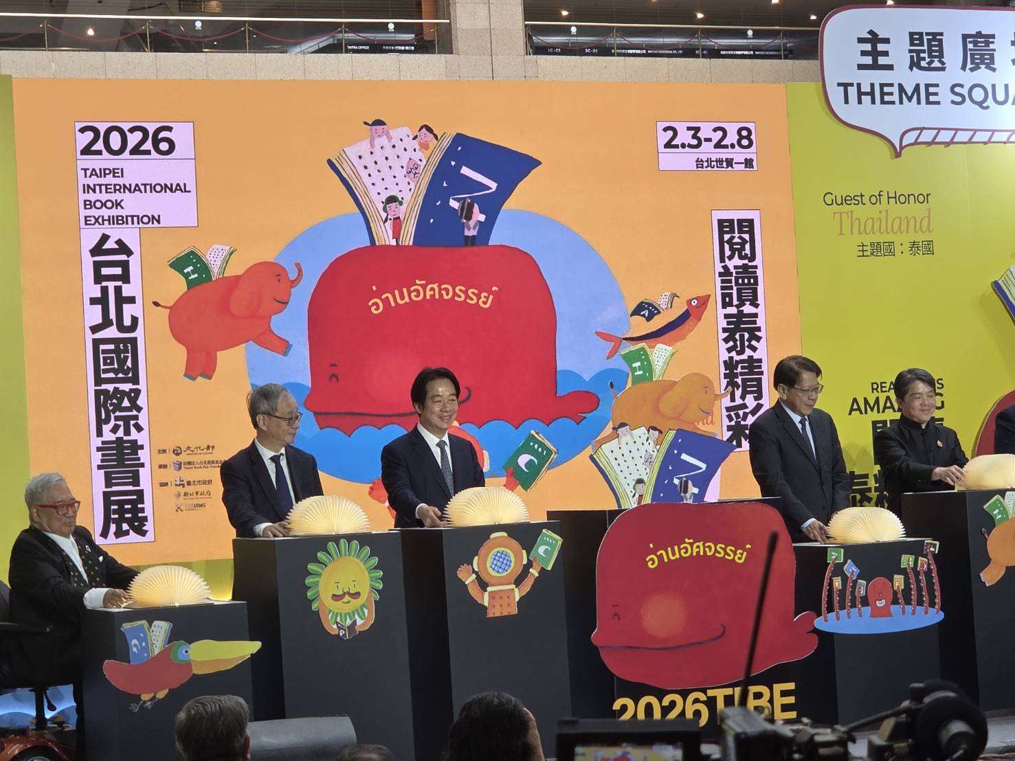 2026台北國際書展今日起至8日在台北世貿一館盛大登場。開幕式上,今年主題國泰國特別帶來精彩文化演出,並由賴清德總統、文化部長李遠、台北書展基金會董事長郝明義、泰國經濟貿易辦事處代表文那隆、泰國書商暨出版協會會長納塔恭(Nattakorn Vuttichaipornkul)以及各國駐台大使等人,共同宣布本屆台北國際書展正式揭幕。