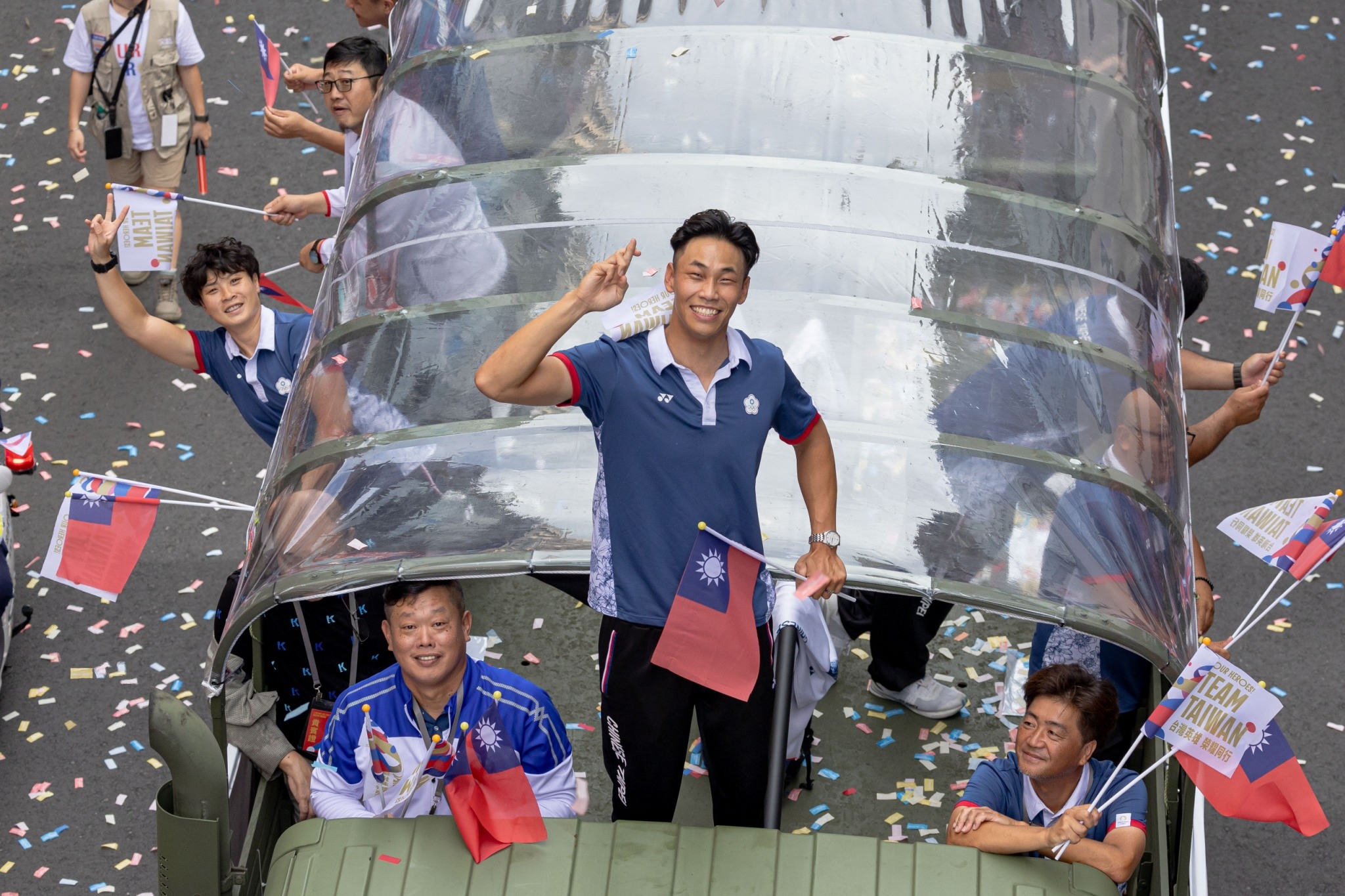 Après la réception au palais présidentiel, la délégation olympique taïwanaise a participé à une parade dans les rues de Taipei à bord de jeeps et de camions militaires, accueillie par une foule de fans taïwanais.