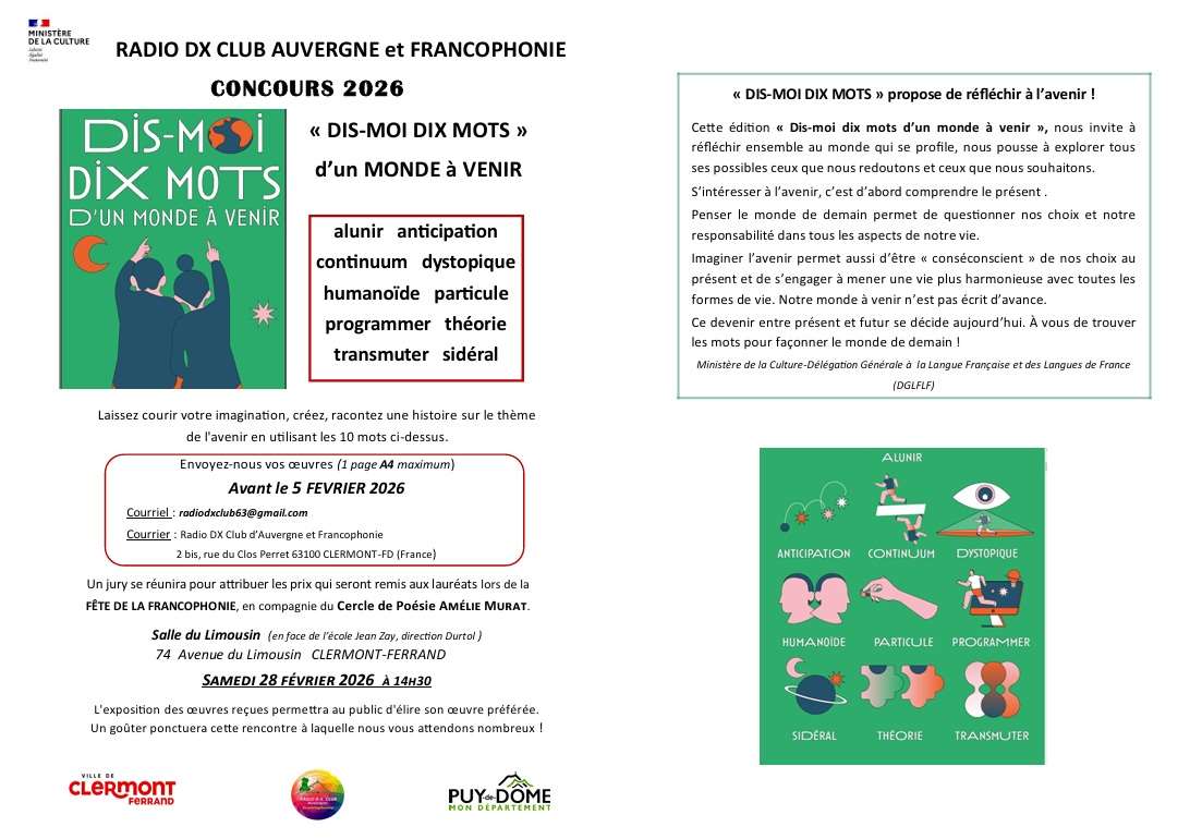 Dans ce Courrier des Auditeurs, Floriane et Sasa rappellent les concours de RTI et vous parlent aussi d'un concours de poésie organisé par le Radio DX Club d'Auvergne (cf. flyer ci-dessous).