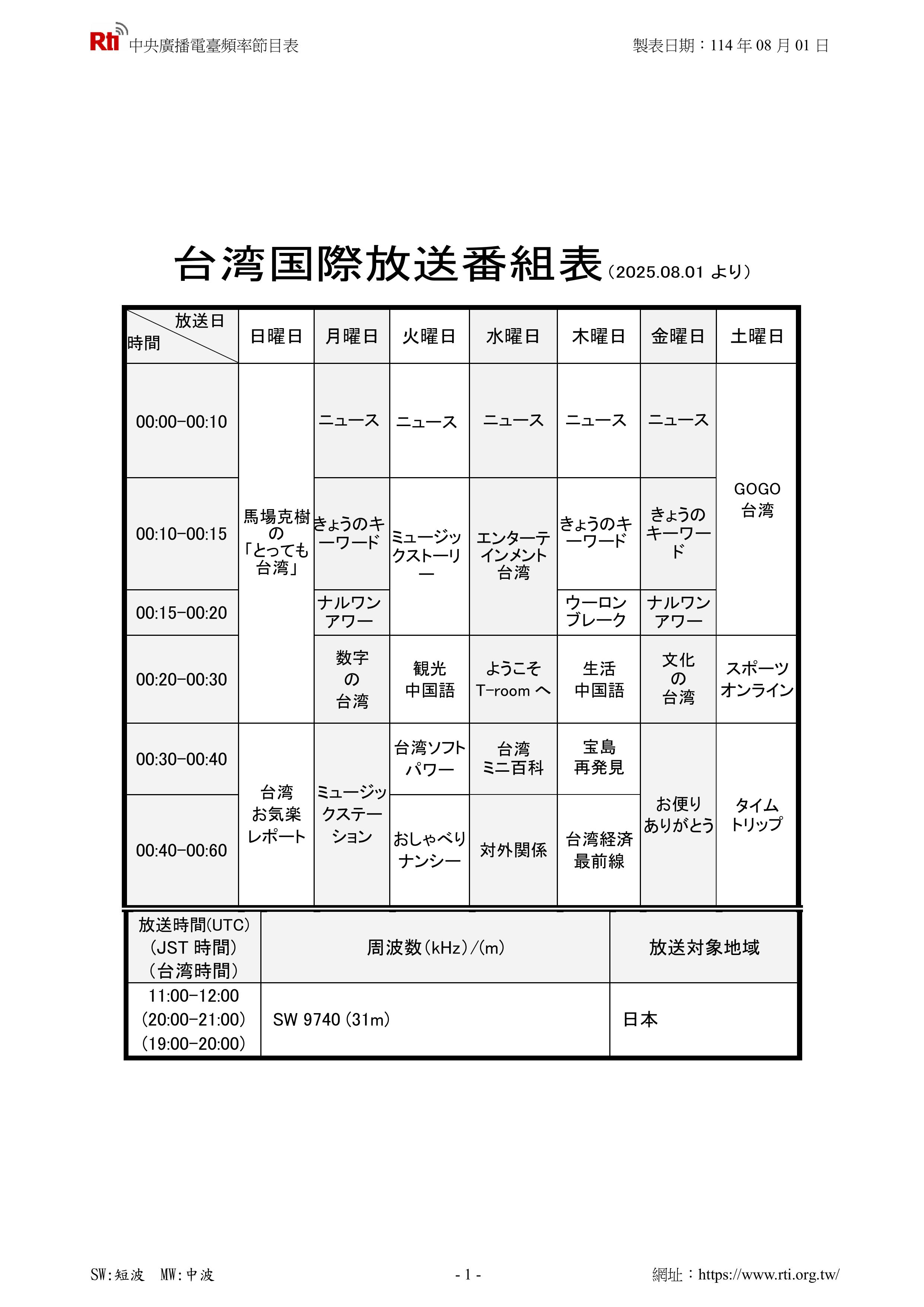 台湾国際放送番組表