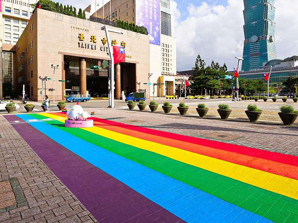 타이베이시정부 앞에 있는 ‘무지개 횡단보도’ - 사진: 타이베이시정부