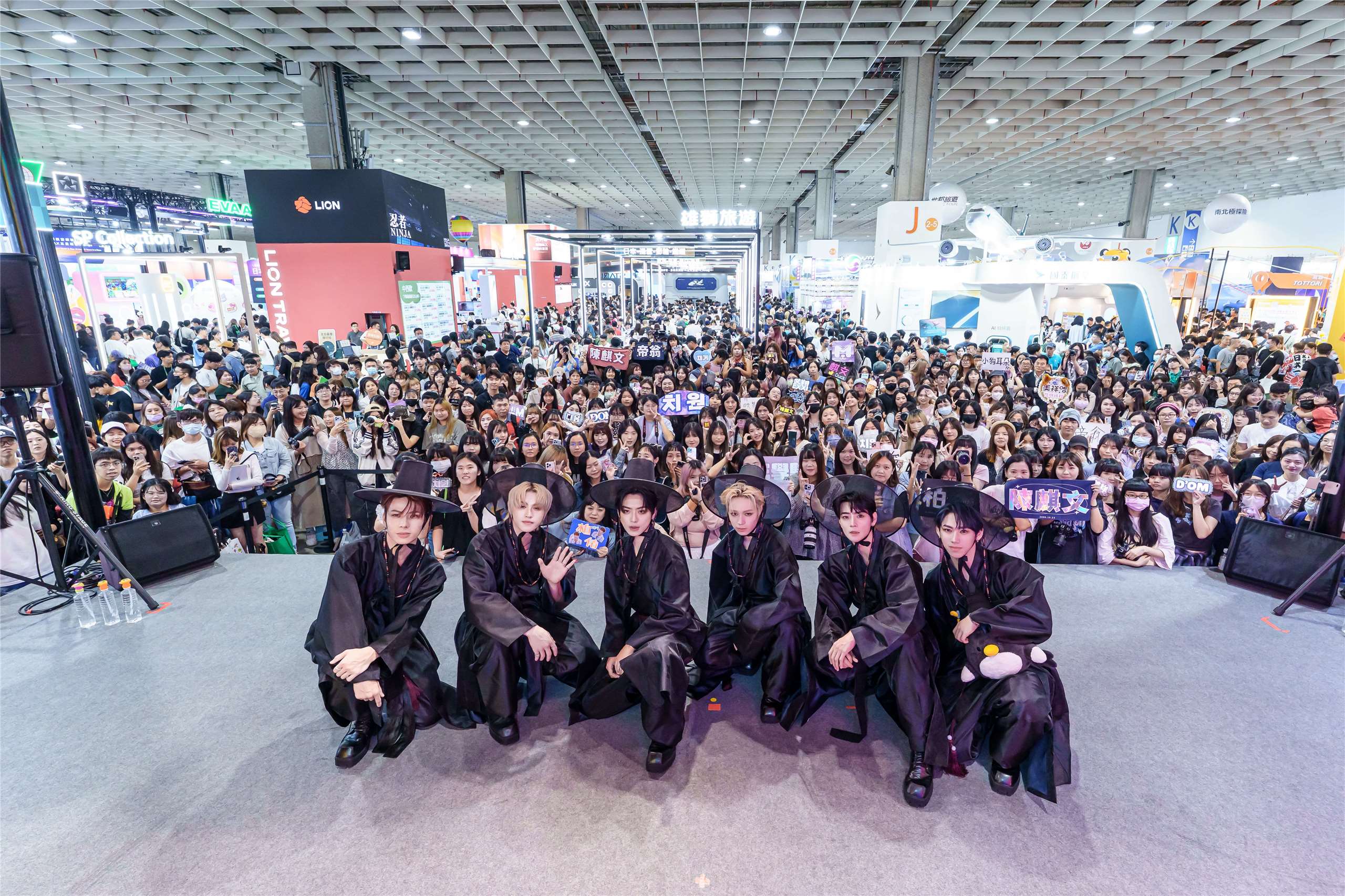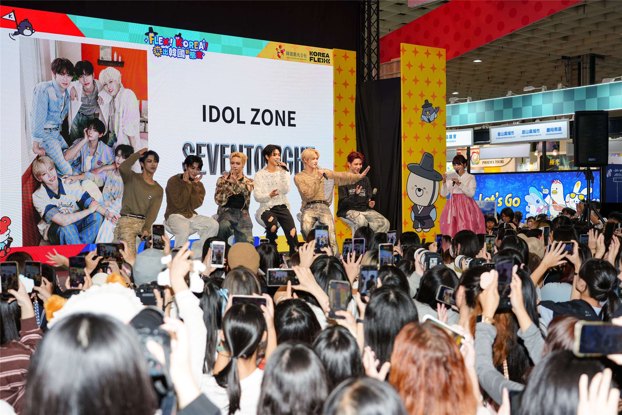 ▲ 지난 8일(토) 2025 ITF 한국 홍보관 무대에서 세븐투에잇이 팬들과 함께 기념촬영을 하고 있다. [사진= 한국관광공사 제공]