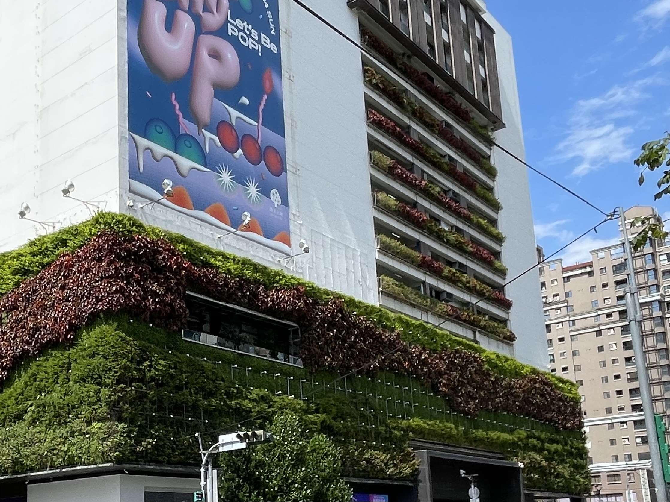 참고로 이 백화점은 친메이 그룹과 청핀 그룹이가 공동 운영하고 있고, 초목으로 덮인 ‘그린월(green wall)’로 유명한 곳입니다. 지속가능한 발전과 환경을 고려한 설계가 돋보이는 타이중의 대표적인 친환경 건물입니다.