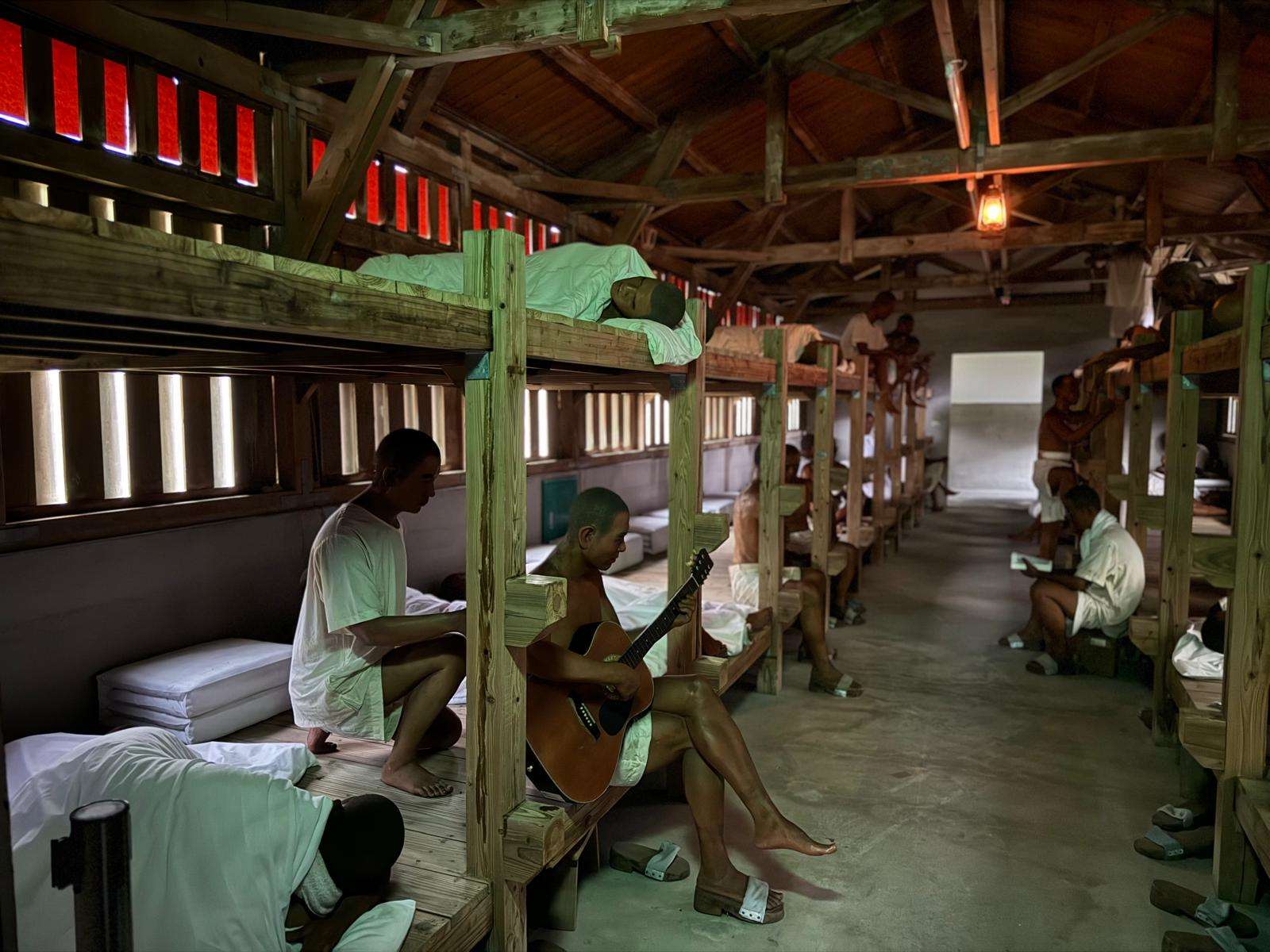 신생훈더처는 원래 타이베이 네이후(內湖)에 있었고, 수감자가 많아지면서 1951년 보다 고립되어 있고 사상개조에 적합하다고 판단된 뤼다오로 옮겨졌습니다. 위치는 바로 앞서 언급한 일본 식민지 시대 ‘부랑자 수용소’가 있던 자리입니다. 수감자들은 삼민주의, 국부유훈, 공산주의 비판 등 사상 교육을 받는 동시에, 병사들과 수감자들의 생활을 유지하기 위한 막사 건설, 농사, 축산 등 강제 노동도 해야 했습니다. 그래서 당시에는 “스스로의 감옥을 스스로 만든다(自己的監獄自己蓋)”라는 말이 유행했죠.