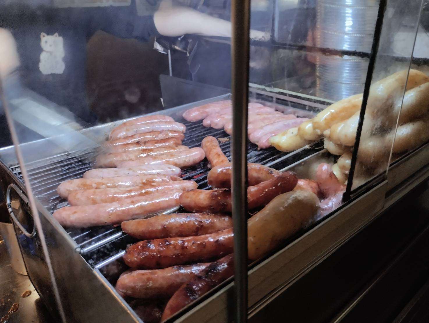 숯불에 구워 육즙이 뚝뚝 떨어지는 붉은빛 소시지 소창=샹창과