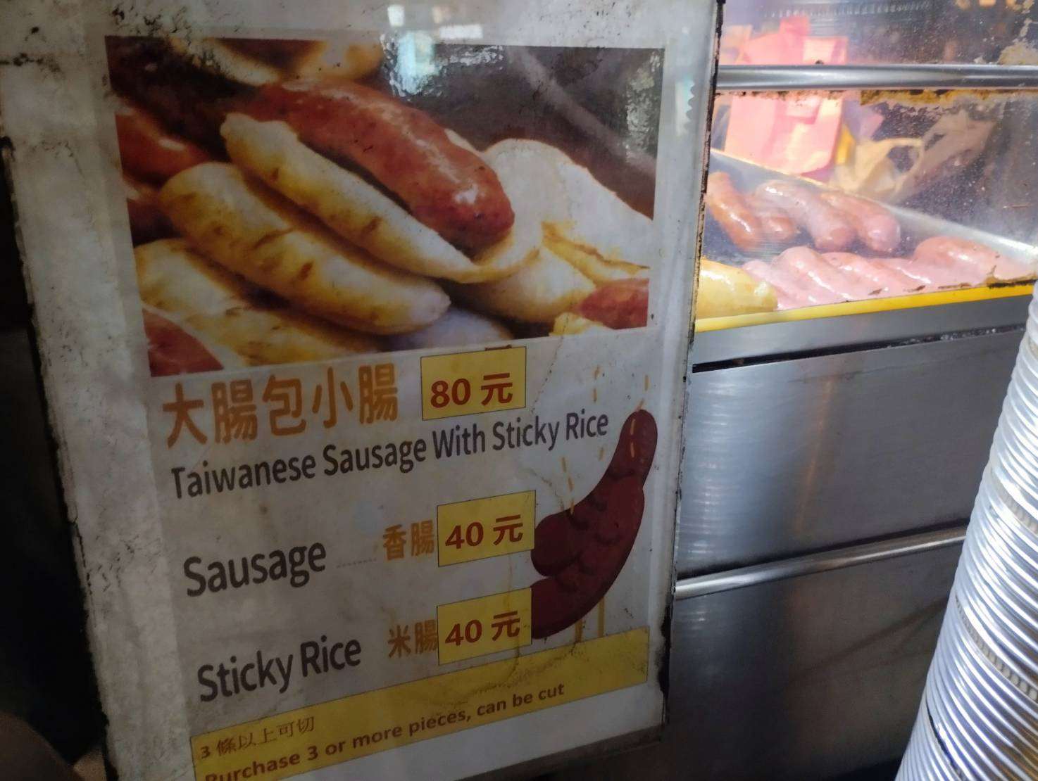 ▲다창바오샤오창은 개당 뉴타이완달러 80원, 샹창과 찹쌀 소시지 ‘미창(米腸)’은 40원이다. 타이베이 시내에서 가장 흔하게 볼 수 있는 가격대다. [사진 = Rti 손전홍]