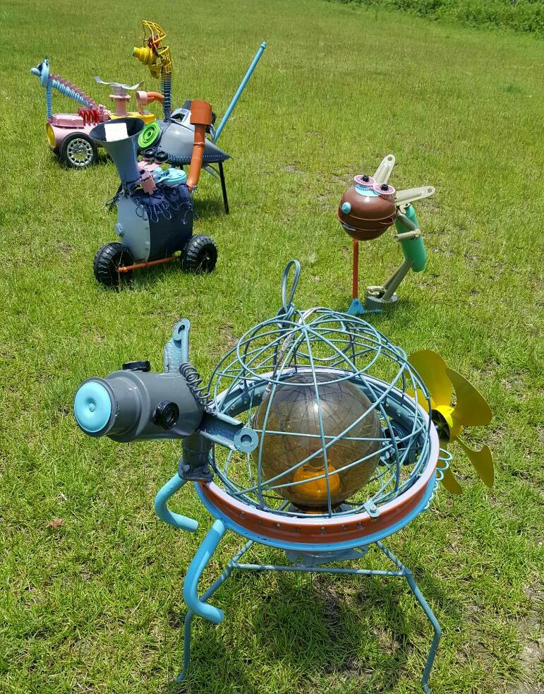 14個「碳狗」公共藝術裝置,造型大不同。/校長蕭玉盞 提供