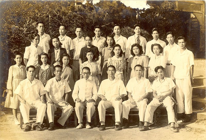 鍾有妹(三排左三)任職於新竹芎林公學校與教職員合影。(鄧泰超提供)