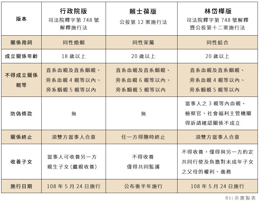 立法院朝野黨團今天(14日)逐條協商三個版本的同婚專法,雖然因國民黨立委賴士葆堅持全案保留而無法簽下協商結論,仍有五條條文朝野獲得初步共識「建議通過」,民進黨立委林岱樺提出的「防偽條款」則建議不予採納。民進黨團已將同婚專法排為周五立法院會第一案,屆時將表決處理,本周五可望完成三讀。
