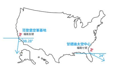 福衛五號是太陽同步軌道的遙測衛星,軌道傾角是98.28度。由美國西岸加州的范登堡空軍基地向南偏西發射,可以達到98.28度的軌道傾角,而且第一節火箭(如果不回收的話)會落入海中,不會危及空軍基地附近居民的人身安全。