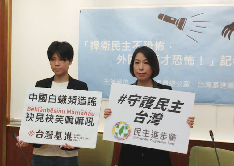 基進黨台北黨部副執行長王映心(左)、民進黨立委余宛如(右)(劉玉秋 攝)