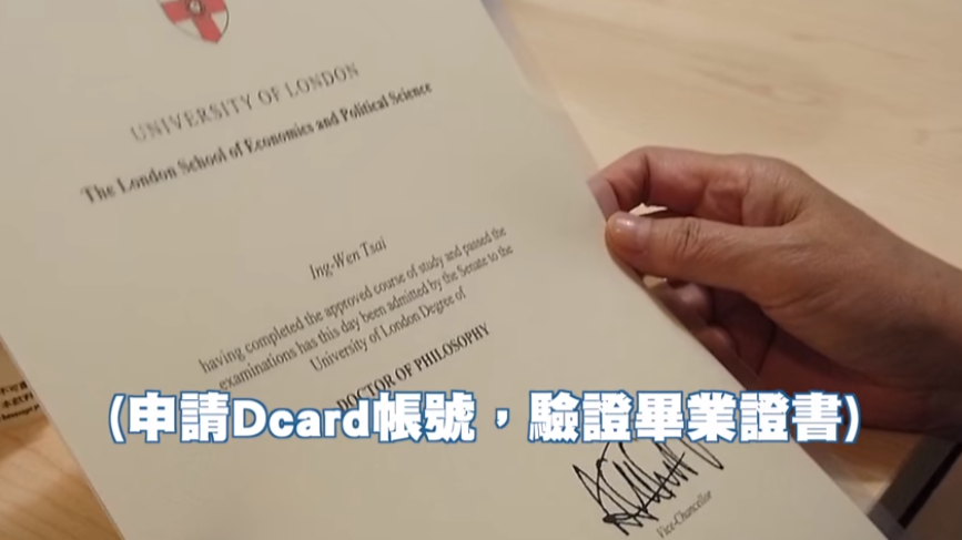 蔡總統訪Dcard 首次秀倫敦政經學院畢業證書。(圖:截自蔡英文臉書影片)