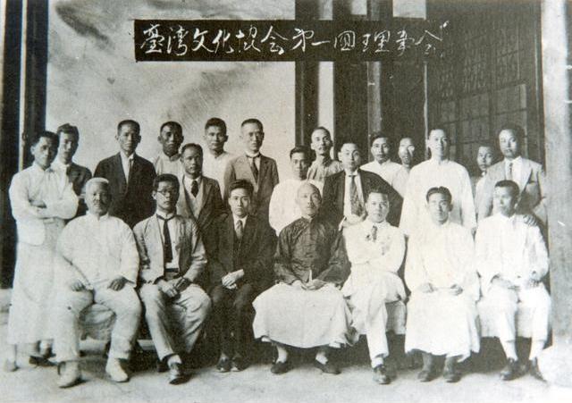 蔣渭水(前排左三)發起創立臺灣文化協會。