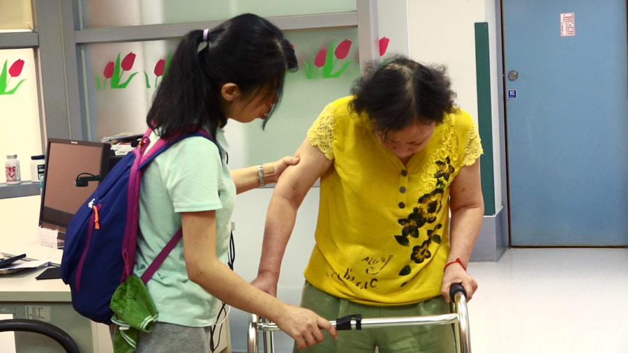 來回短短路程,素珠阿姨走得滿身大汗,但是在女兒從旁鼓勵之下,今天的步態測量,她堅持到最後。
