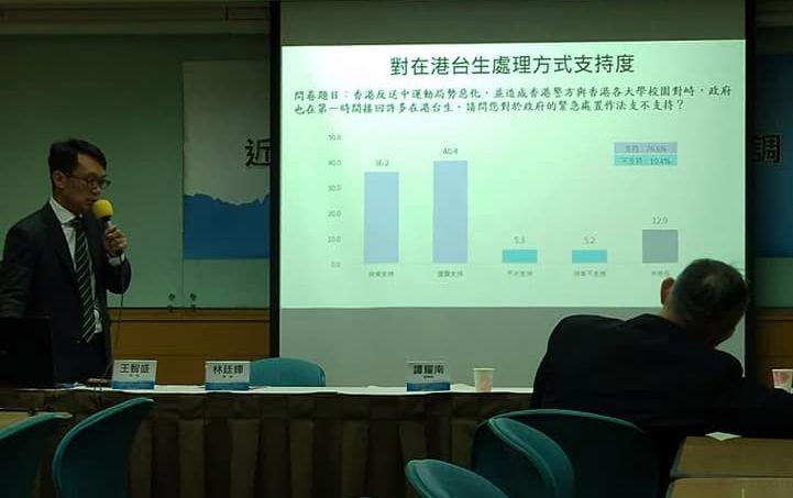 不過,這份民調並未詢問民眾對香港區議會選舉結果、王立強共諜案等議題的看法。出席記者會的台灣國際法學會副秘書長林廷輝表示,蔡韓差距超過20個百分點,已經沒有政治操作的必要。他認為未來一個月,大選有外力介入的因素已經不太可能發生。林廷輝說:『(原音)也就是帶到包含王立強事件、香港事件,是不是這樣小英才能得分,其實不是。其實這個因素就是在這個時間點上就會跑出來,可能大家會認為跟台灣選舉會有一些影響,但如果去操作這東西影響台灣選舉,我認為是沒有那個必要,因為差距過大,造成沒有必要採用外力的介入來干涉選舉或影響選舉。』
