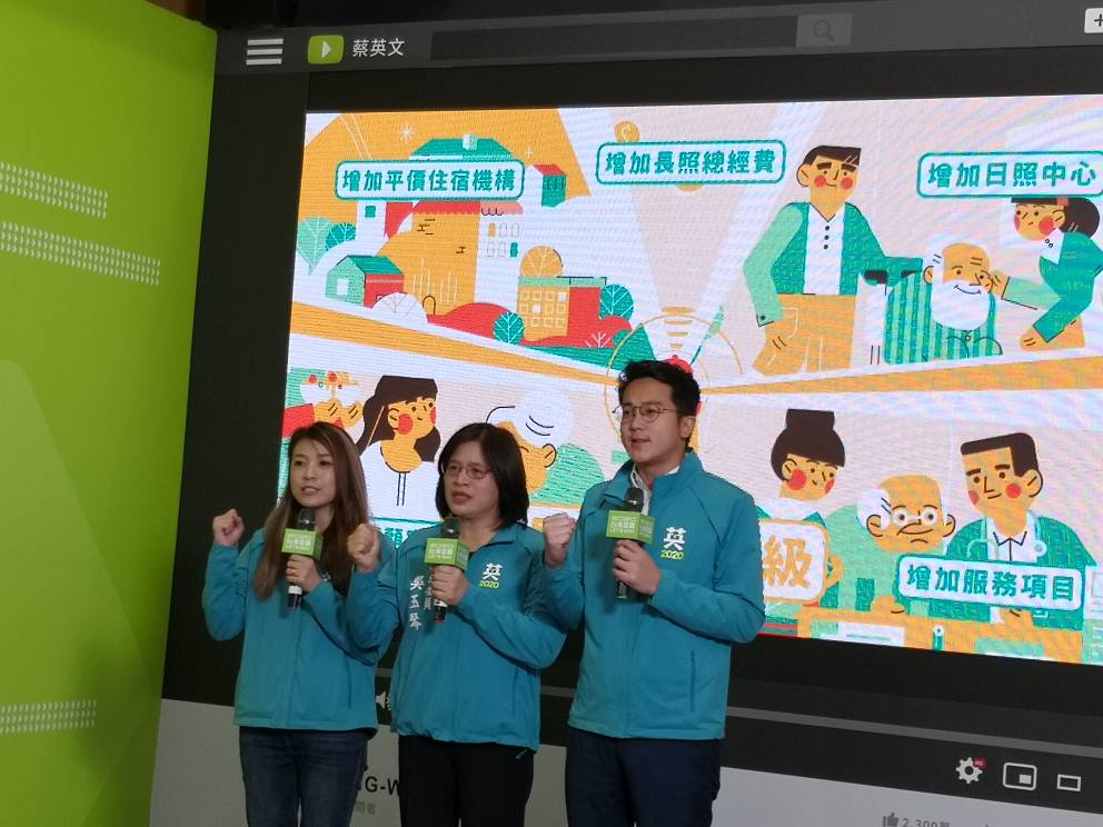 蔡總統連任辦公室17日推出最新「長照2.0升級」的政見影片。(劉玉秋攝)