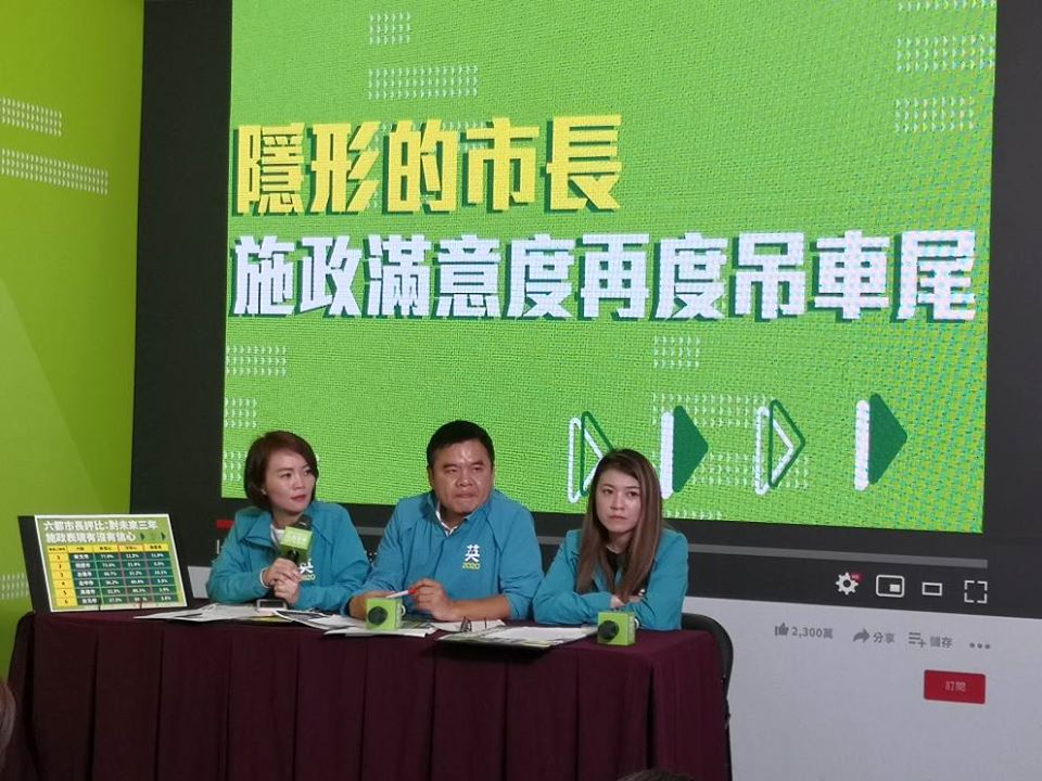 蔡英文總統競選連任辦公室發言人群今天(25日)抨擊,韓國瑜就職高雄市長不滿1年就落跑,六都市長施政滿意度吊車尾,呼籲韓國瑜勿再當「隱形的市長」(劉玉秋攝)