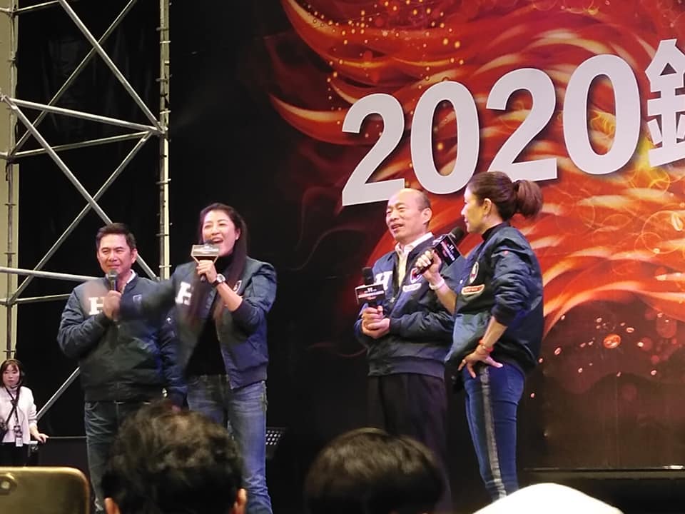國民黨總統候選人韓國瑜28日下午出席「鋼鐵H飛行夾克」愛心拍賣會,他身上所穿的「原味夾克」,最後以100萬元拍出。(王韋婷 攝)