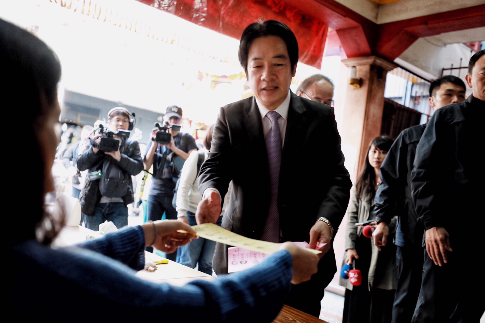 民進黨副總統候選人賴清德前往戶籍所在地投下神聖一票。(英德競選辦公室提供)