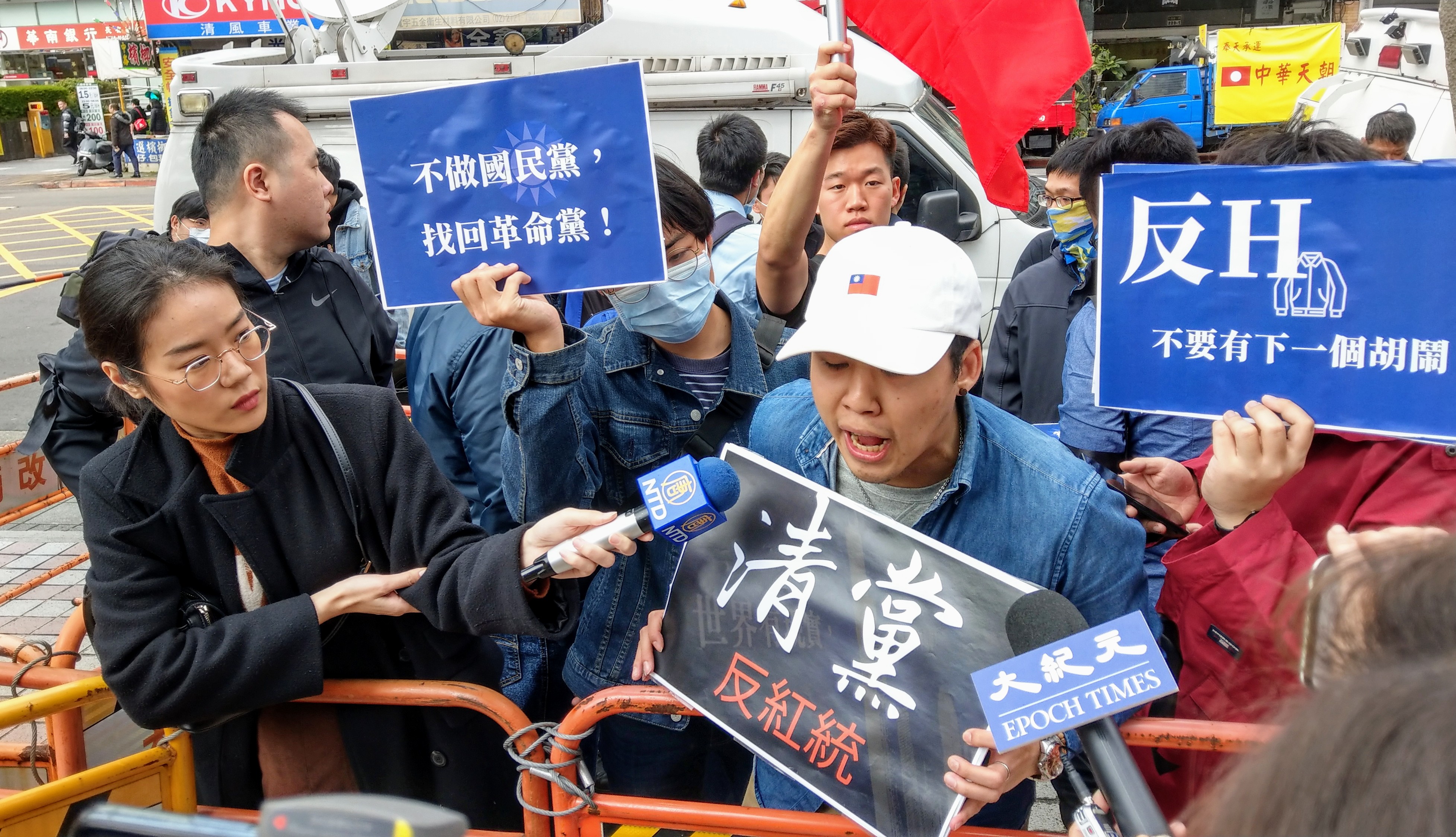 國民黨青年團前總團長林家興率年輕人赴黨中央抗議,主張「清黨」,要求「常會道歉、老賊下台」。(劉品希 攝)