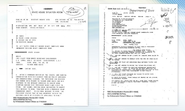AIT於8月31日公布兩則解密電文,強調「六項保證」始終是美國對台及對中政策的根本要素。(圖取自美國在台協會)