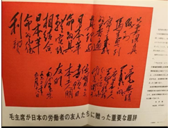 1962年,毛澤東向「日本勞動人民發表重要題詞」:「只要認真做到馬克思、列寧主義的普遍真理與日本革命的具體結合,日本革命的勝利就是毫無疑義的」。這條「重要題詞」時隔6年後的1968年元月正式發表。(左圖:筆者保存。右圖出自:《アサヒグラフ》1969年2月號。東大全共鬥時期。)