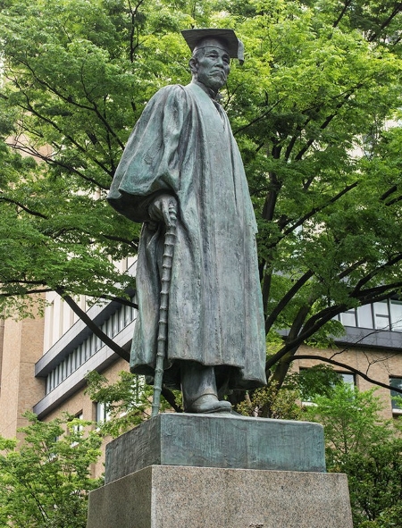 「學問之獨立」,意味著與「在野精神」和「反骨精神」相結合,以培養獨立自主精神的近代國民為理念,不為權力、時勢左右的科學教育與研究。圖為早大校園內創始人大隈重信的雕像。