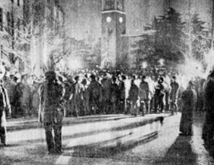 1966年2月,早大「全共鬥」4000餘名學生阻止入學考試集會。校方請求警視廳機動隊排除示威學生。(寫真出自網路)