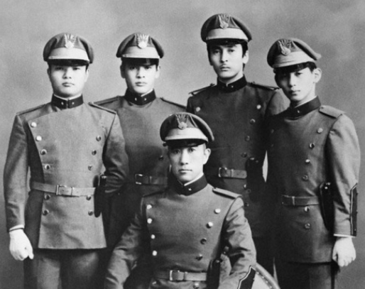 1970年10月19日坐者:三島。後排從左至右分別是:森田、古賀、小川、小賀。(寫真出自網路)