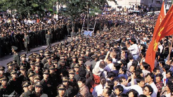 軍警攔阻學生隊伍(六四檔案/本文作者提供)