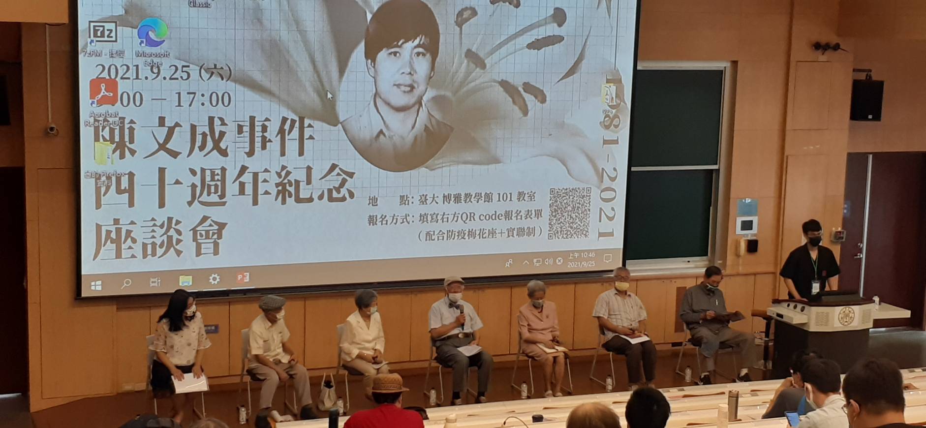 台大退休教授高成炎則是哽咽說到,他跟陳文成是數學系差一屆的學長弟,數學系的大家其實都很關心陳文成事件,在來演講前,高成炎在數學系群組問大家有沒有什麼想說的,其中一名系友張海潮說到,「陳文成事件發生時,我一直視而不見,我知道發生了什麼,可是我沒有說出來。直到江南命案。」,高成炎也分享到,在陳文成死前,他們還相約一起打籃球,但因為臨時作罷,改在辦公室聊天,沒想到那是最後一面。
