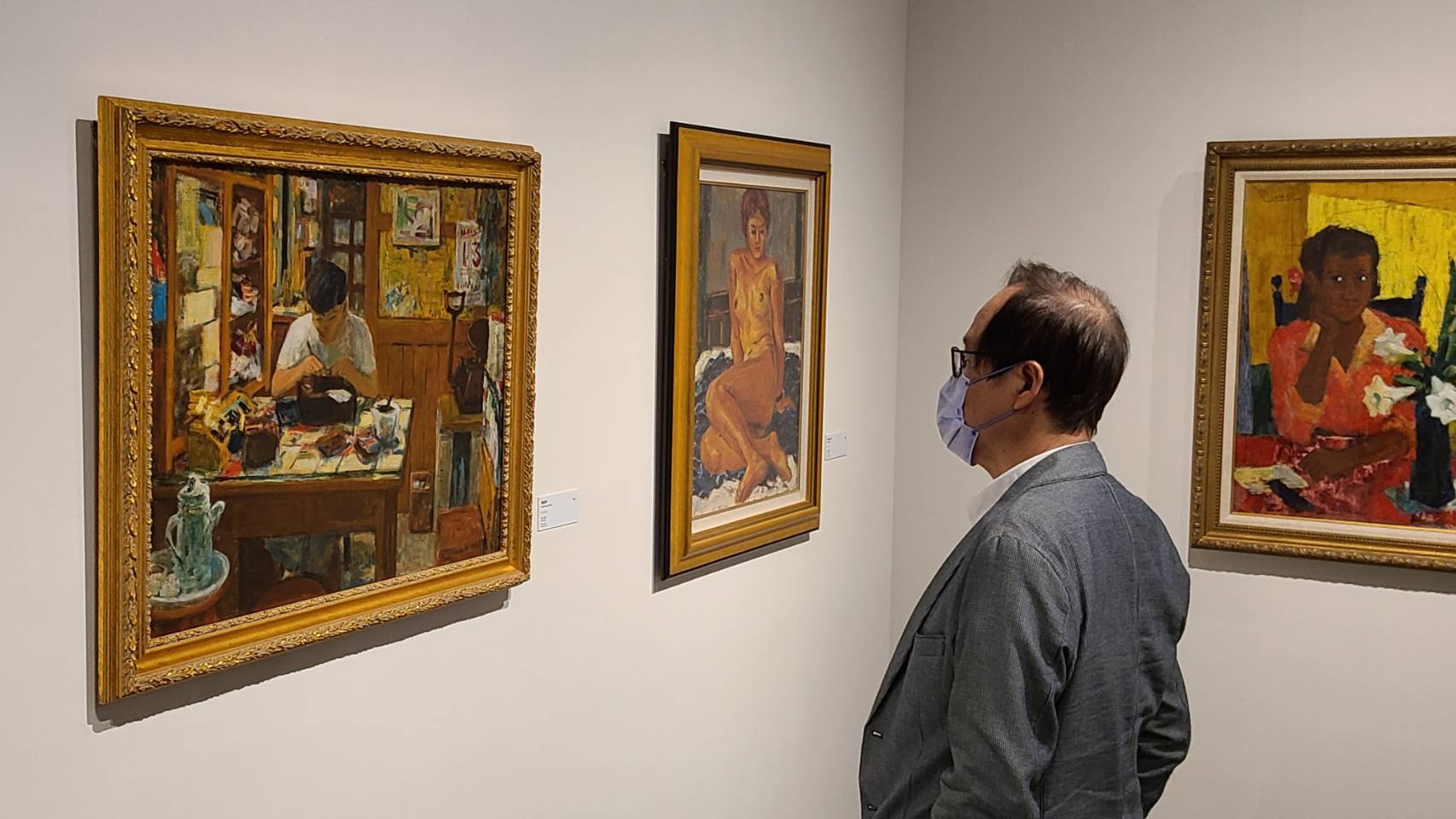 「廖修平:跨越疆界的最前線」特展難得展出廖修平學生時期的油畫作品。(江昭倫 攝)