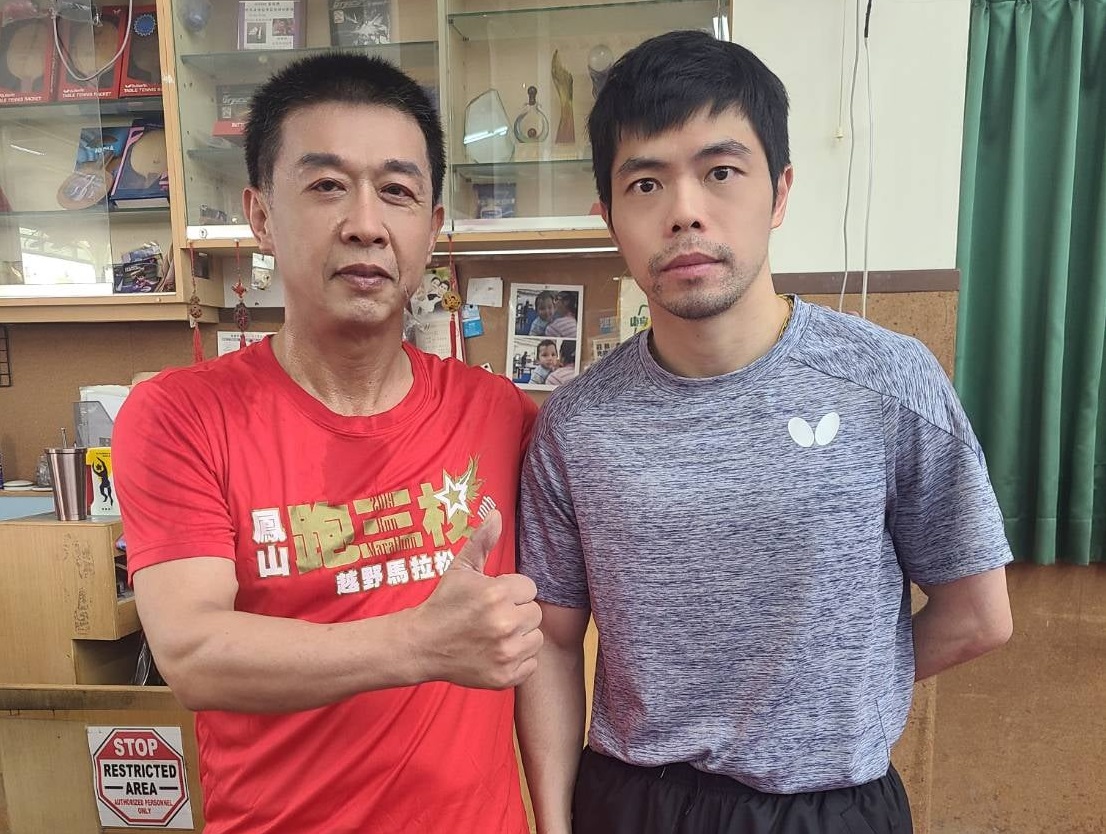 曾得過桌球賽冠軍的民進黨立委許智傑,趁著農曆春節期間特別前往高雄莊智淵成立的桌球教室,與莊智淵切磋球技。(圖:許智傑委員辦公室提供)