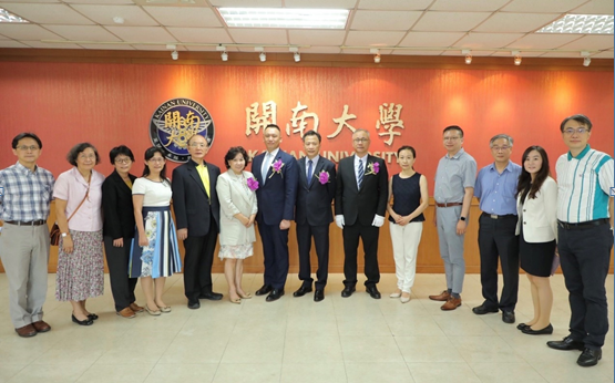 開南大學國家暨區域發展研究中心揭牌,開南大學董事長顏志光(左ㄧ)期許研究中心繼續幫國家推展國民外交,促進更多學術國際交流。(開南大學提供)