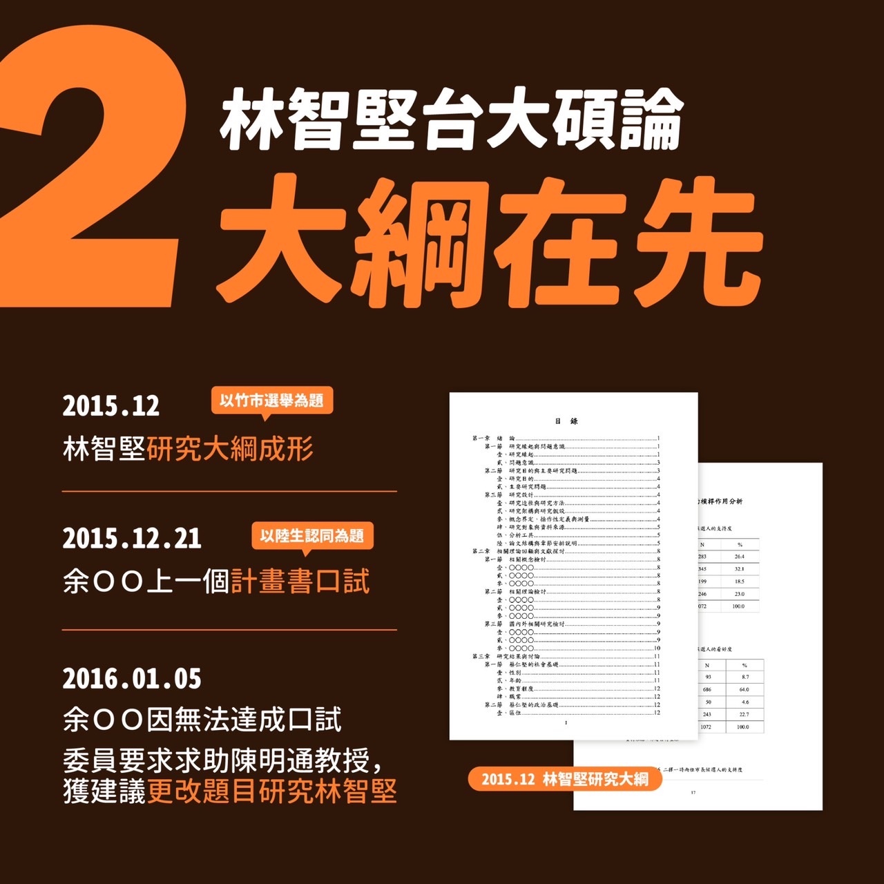 民進黨桃園市長參選人林智堅公布自己論文撰寫過程時間序。(林智堅提供)
