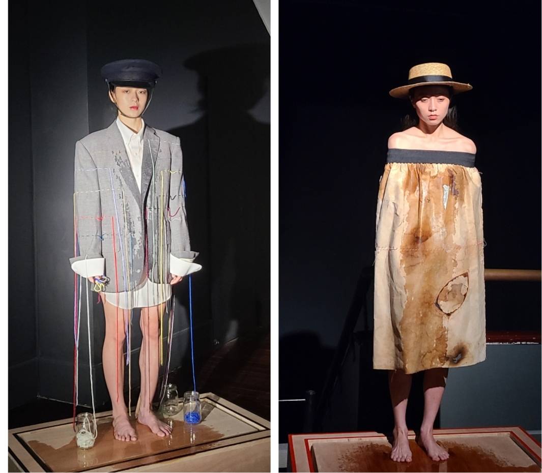 呼應「轉接器」主題特展,當代館也邀請河床劇團在展場內進行「夢遊」行為藝術展演。(江昭倫 攝)
