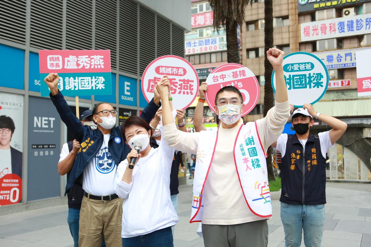 基隆市長選戰激烈,國民黨參選人謝國樑10日邀台中市長盧秀燕助陣。( 謝國樑臉書)