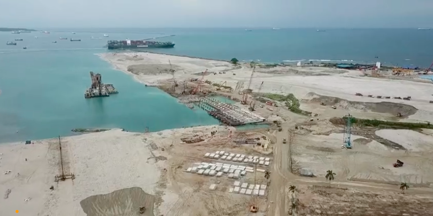 巴拿馬與中國合作的一帶一路工程,巴拿馬科隆及裝箱港口(PCCP)工程。圖:騰訊視頻
