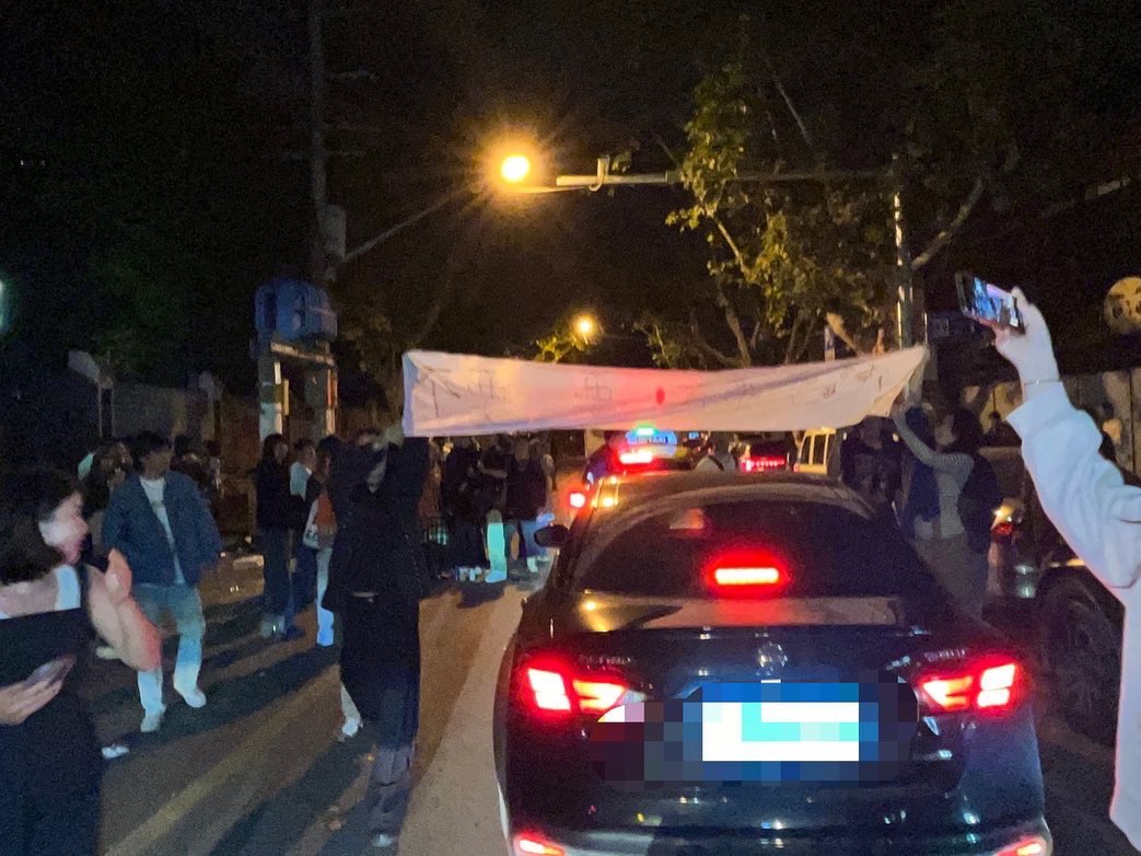 習近平23日在中共20屆一中全會3連任總書記後,上海市23日晚上有年輕人拉起向北京四通橋抗議事件致敬的橫幅,沿著襄陽北路遊行示威,引發路人圍觀,途中有人靠近表示「我們一直想幹這個」。