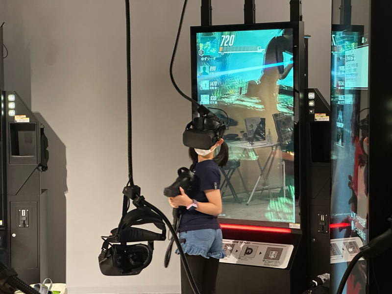 日本最大虛擬實境(VR)電競樂園RED° TOKYOTOWER位於東京鐵塔商場,各項設備都有適用年齡說明,也有小學生可遊玩的射擊遊戲。 (圖:中央社)