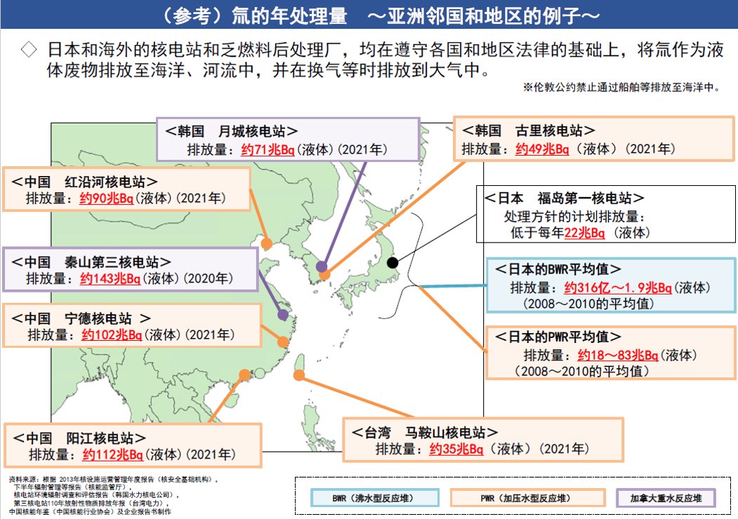日本駐中國大使館公布亞洲各國氚排放量。(Twitter/@Japan_Emb_inCN)