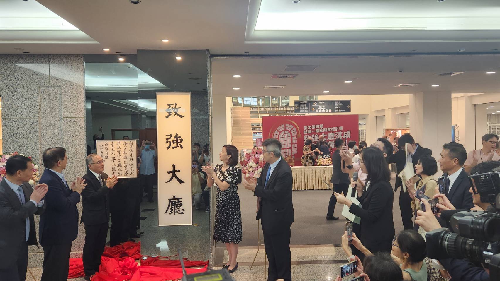 在校友謝南強的出錢支持下,台大圖書館一樓大廳換新裝,並取名為「致強大廳」,16日正式揭牌。(江昭倫 攝)