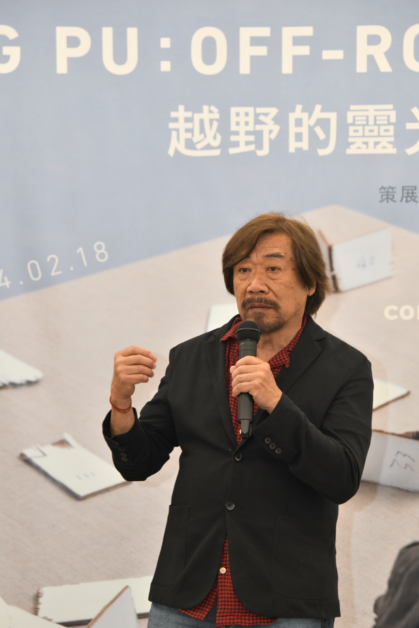 策展人石瑞仁表示,之所以將展覽名稱命名為「越野的靈光」,其實是描繪莊普雖然喜歡創新,但卻有一以貫之的創作脈絡。石瑞仁:『(原音)越野,其實是他本來有一條路,他喜歡跳到道路外面去採集些什麼東西,然後又回來,跟原來的東西,兩邊有些互相加持、互相加碼的概念。』