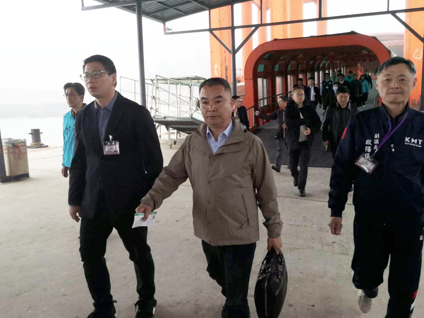泉州台辦副主任李朝暉(中)及中方家屬代表團5日搭小三通船班返回中國。(劉玉秋 攝)