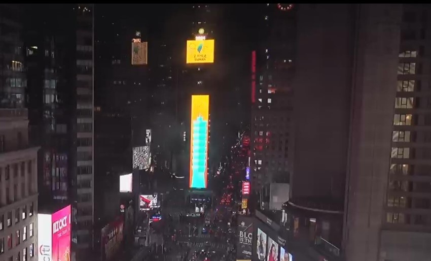 從時代廣場大型LED廣告上可以看到青鳥飛過台北101的影像,上方顯示台灣圖樣,並寫上「望你順遂」字樣,同時還搭配串連台灣廟宇意象、晶片、珍珠奶茶、鳳梨與玉山串連起來的巨幅螢幕,隨後則有結合彩虹與TAIWAN以及選舉投票章等圖案的,凸顯台灣豐富且活躍的民主國家形象。
